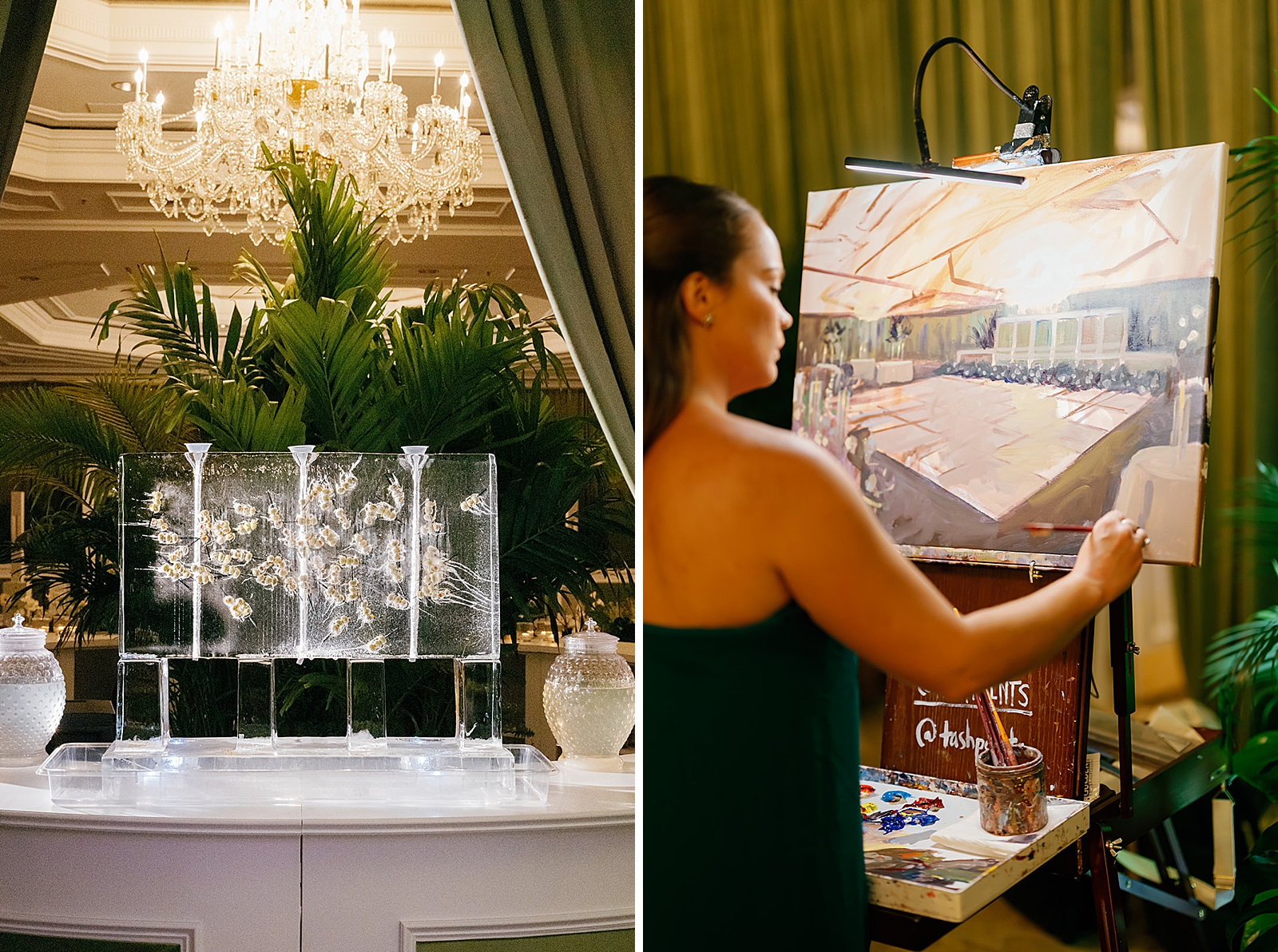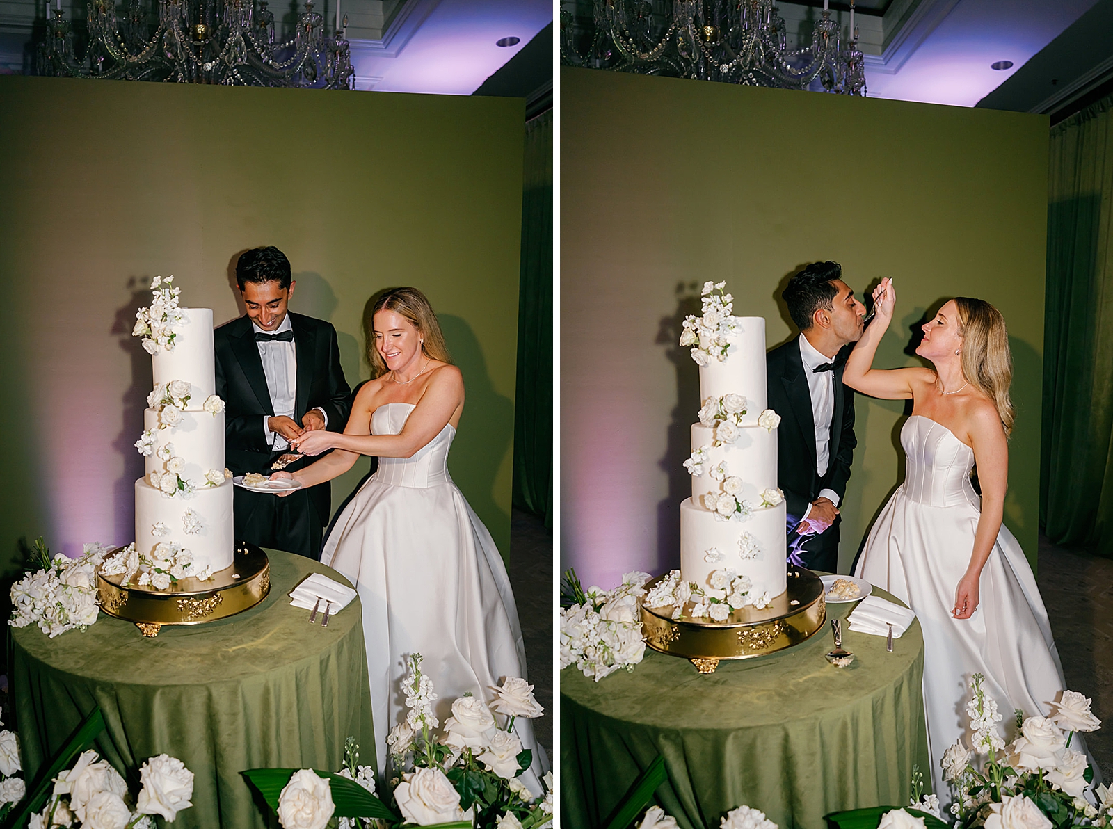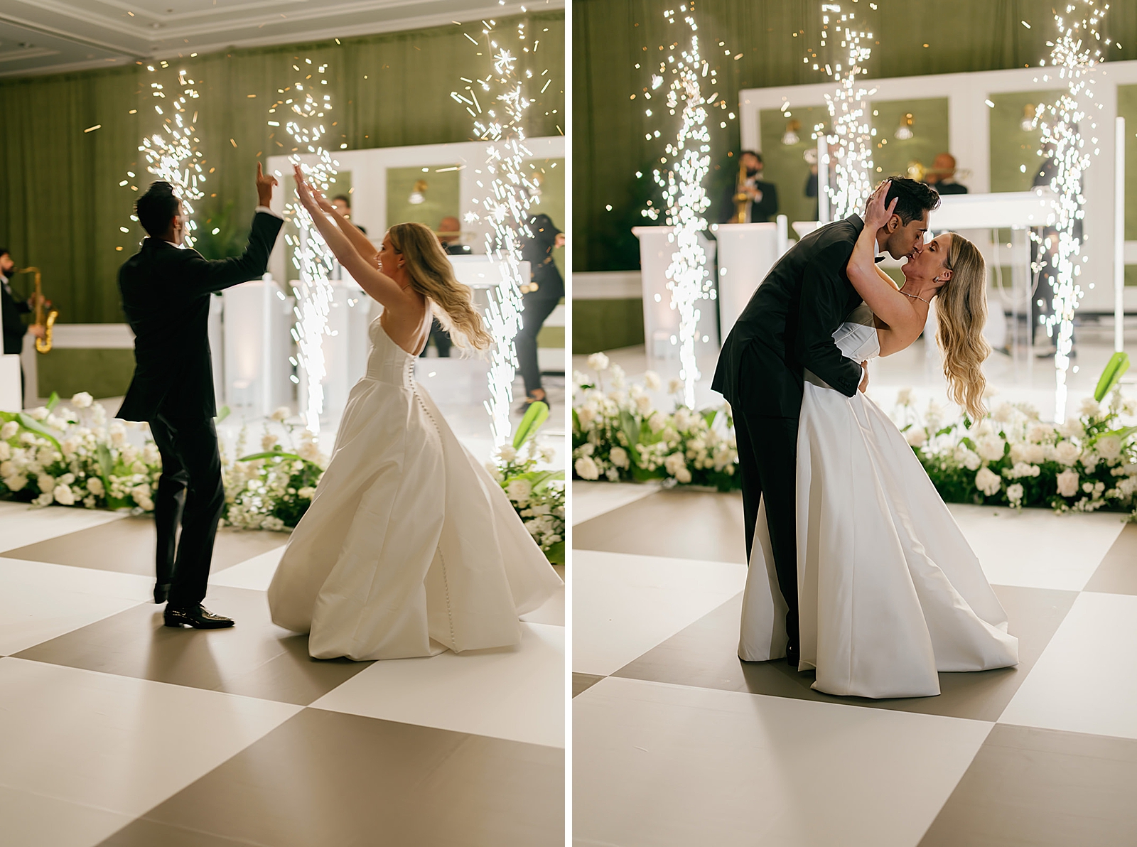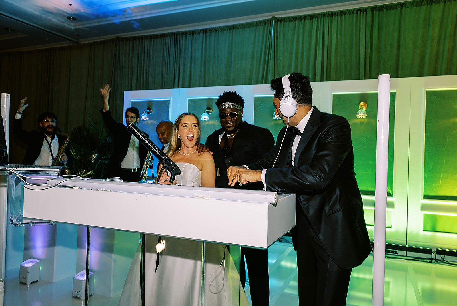 The design, curated by The Golden Pineapple Event Company, leaned into a fresh, verdant color palette—a reflection of the couple’s shared love of green and the tropical elegance of Eau Palm Beach. Lush greenery, crisp whites, and touches of gold gave the weekend a modern yet organic look, with every space—from ceremony to reception—evoking the beauty of South Florida’s coastline.