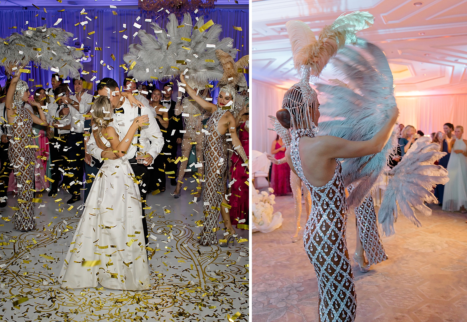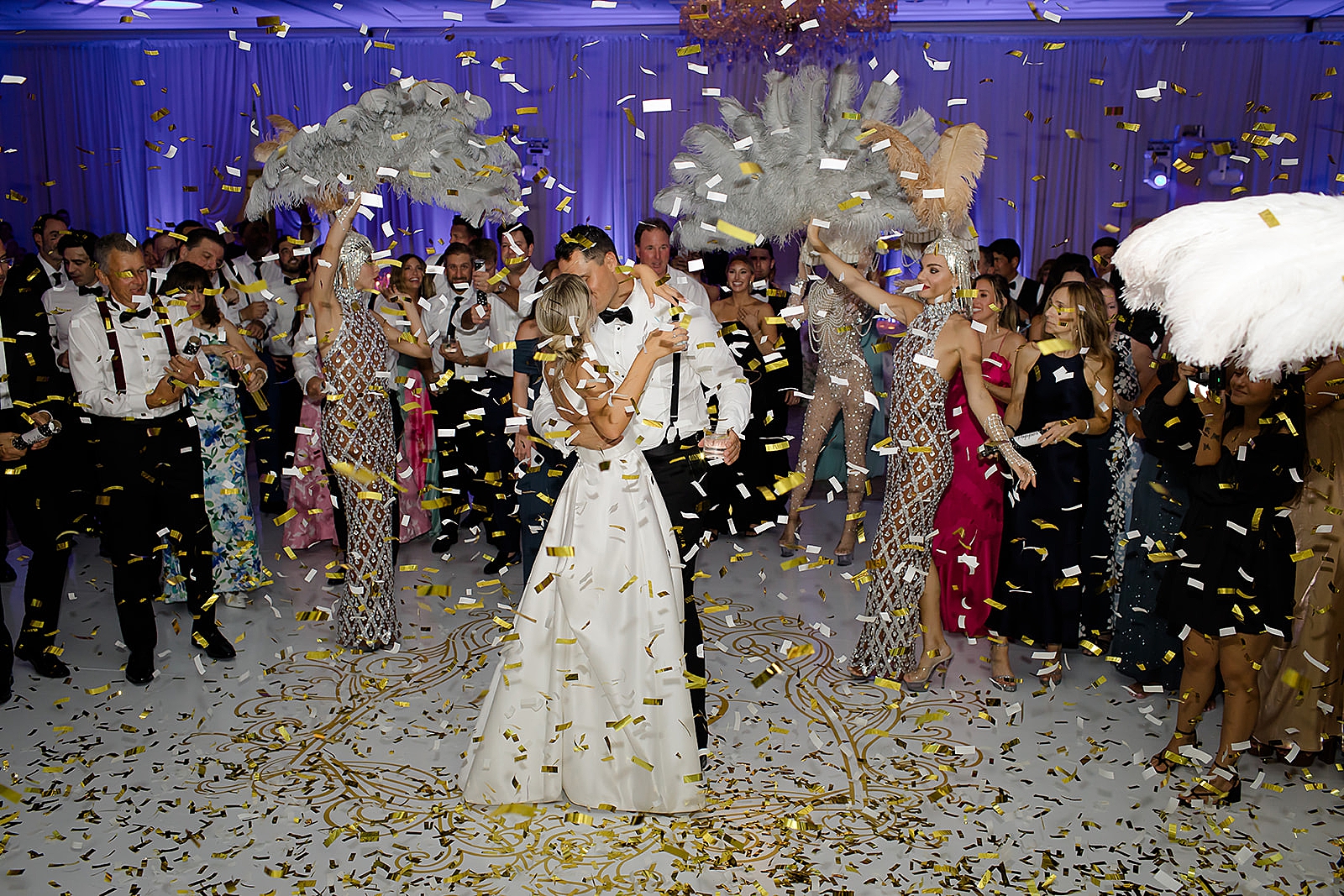One of the most unforgettable moments of the night came during the reception, when professional dancers took to the floor, surprising guests with a stunning performance that brought energy and elegance in equal measure. From there, the party only grew more electric — laughter, dancing, and the undeniable buzz of a love well celebrated.