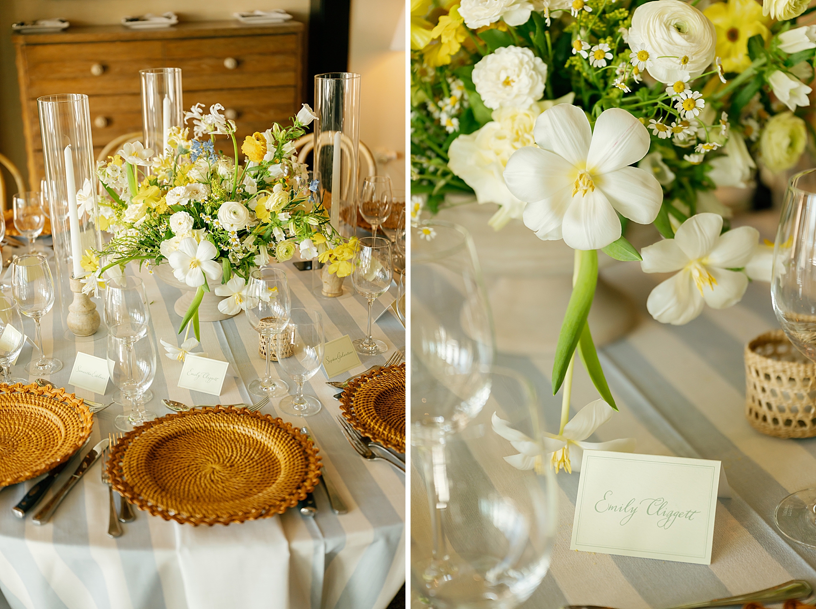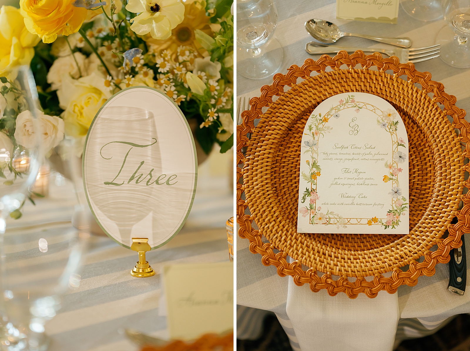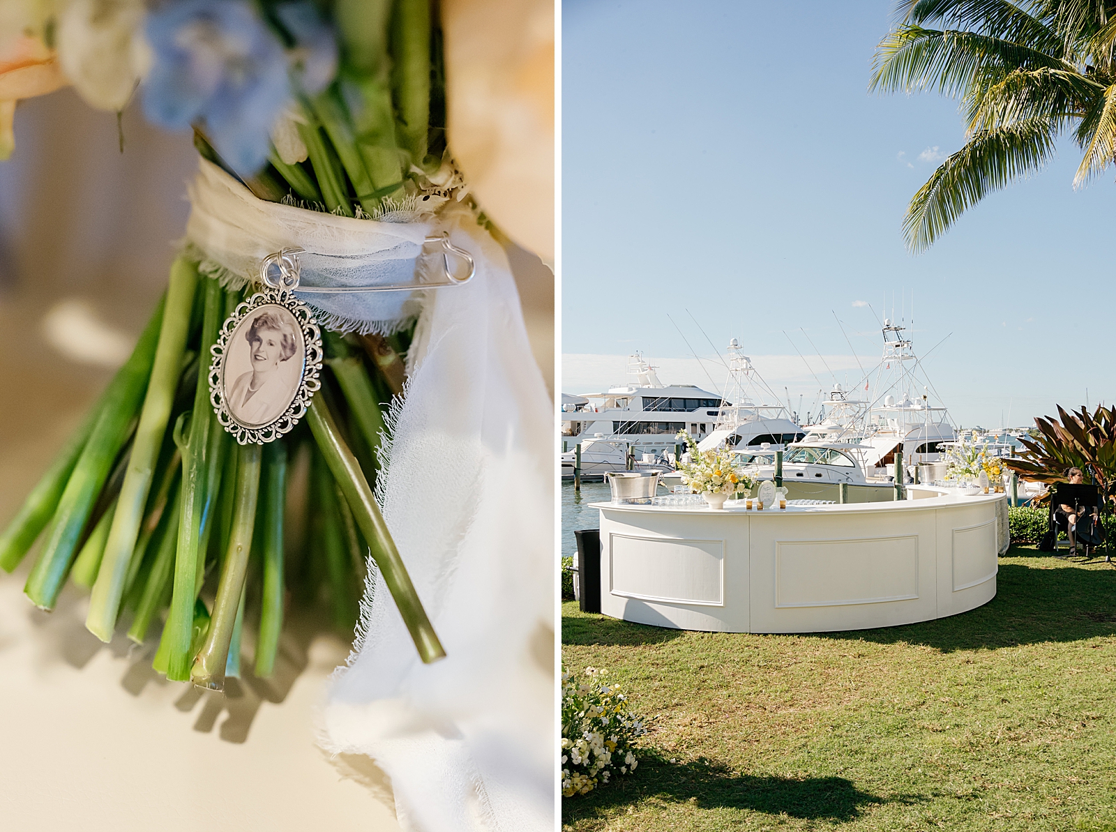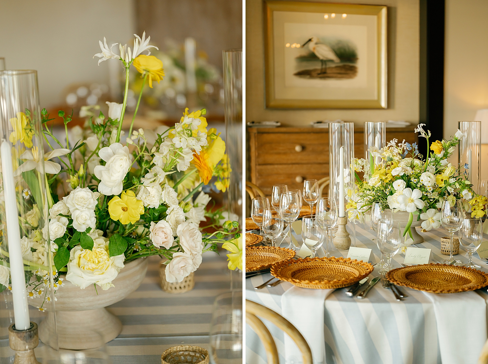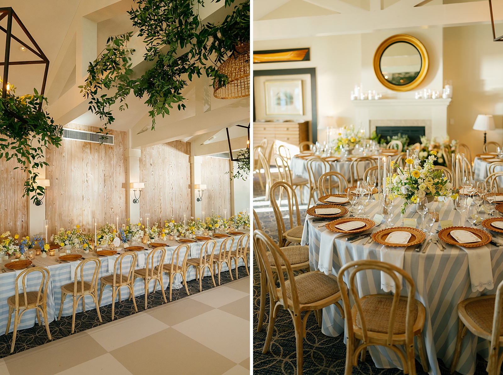 The couple chose a charming color palette of soft yellows, peaches, light blues, and crisp whites. These tones brought a warm, sun-kissed energy to the day, complementing the natural beauty of Palm Beach’s waterfront. Florals, textiles, and stationery all echoed this palette, creating a cohesive atmosphere that felt both fresh and timeless.