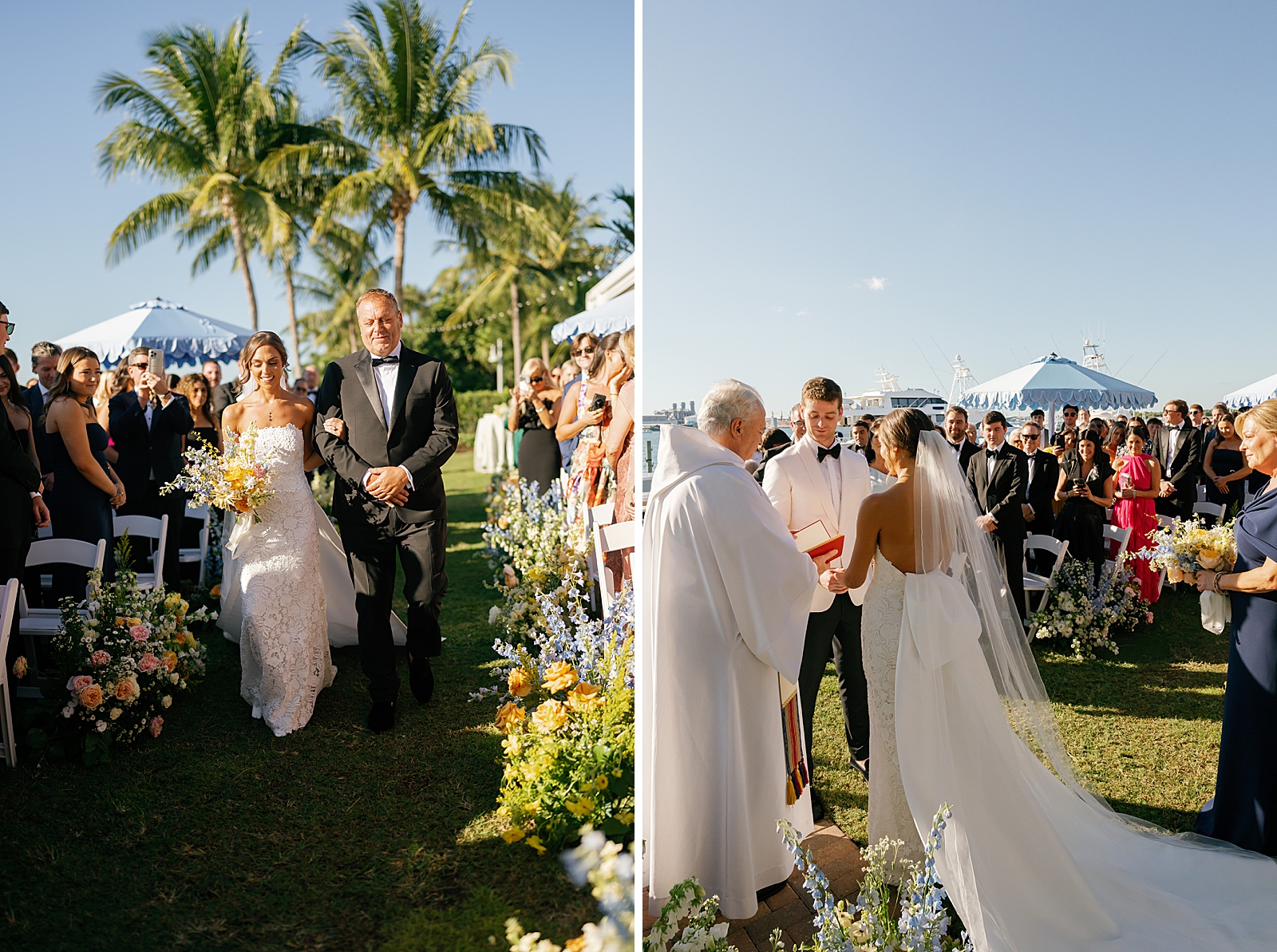 Emily and Bobby exchanged vows outdoors with the Sailfish Club’s stunning coastal backdrop setting the scene. With gentle breezes, soft light, and views of the sunset peeking in the distance, their ceremony felt intimate and romantic. Surrounded by family and friends, they promised forever in a space that felt meaningful and naturally beautiful.