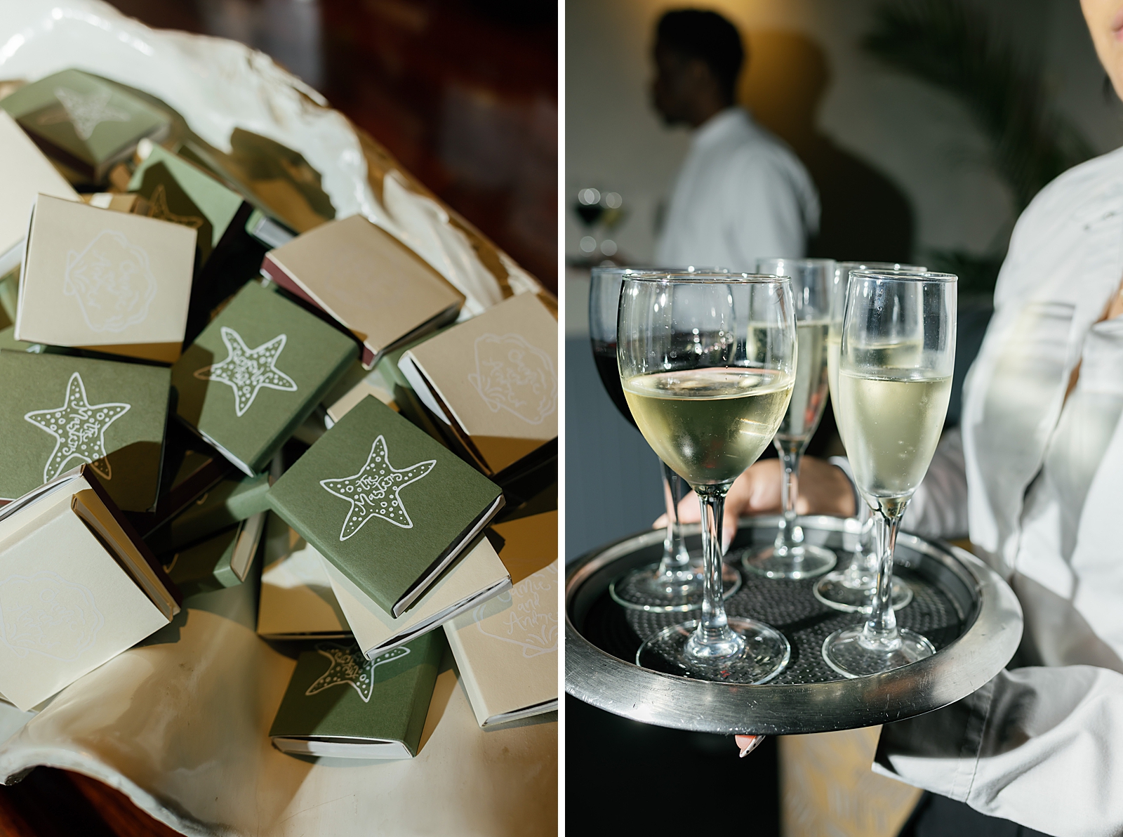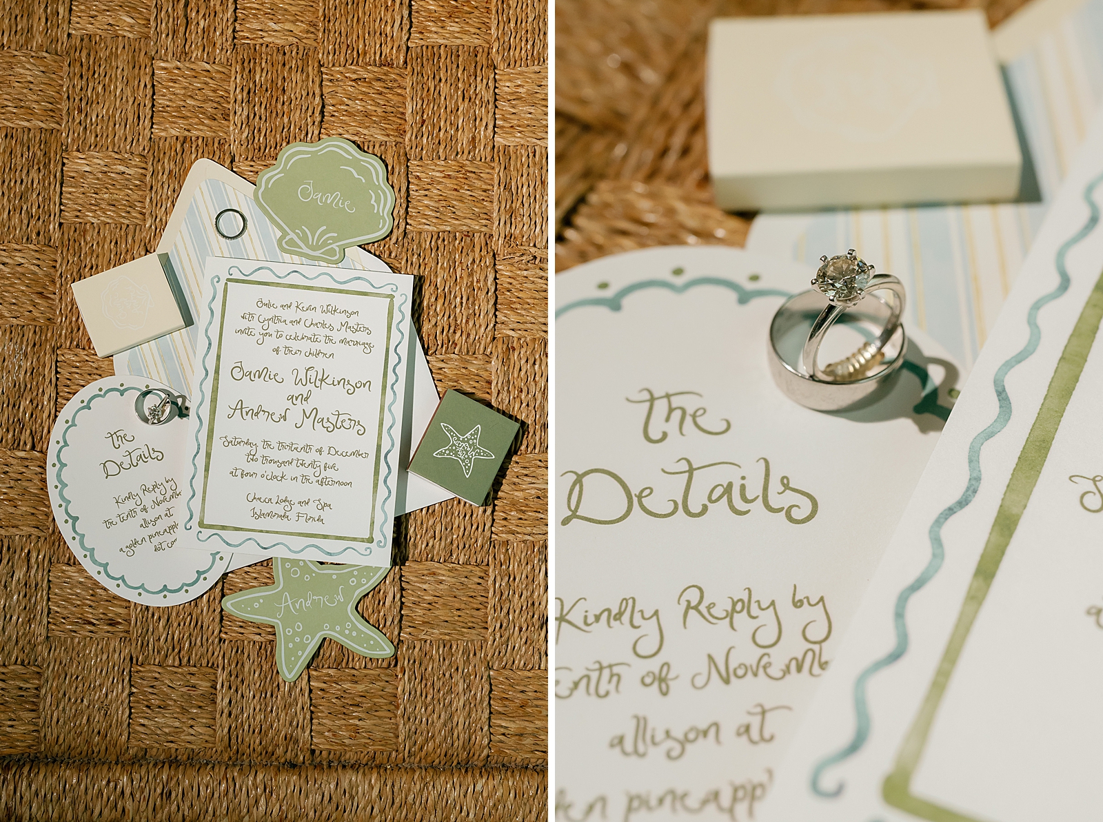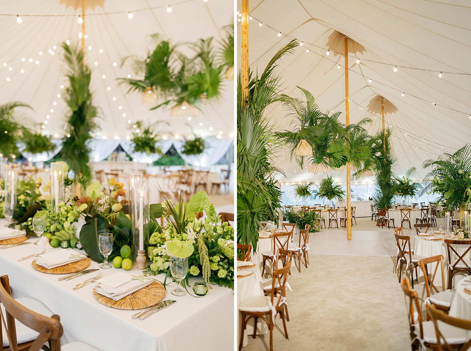 The design palette leaned into timeless coastal elegance: layered shades of green and white, warm rattan textures, and organic elements that felt perfectly at home by the sea. Every detail was intentional yet relaxed—elevated without feeling overdone. One standout design moment was the custom dance floor wrap, which added a personalized and polished touch to the reception space.
