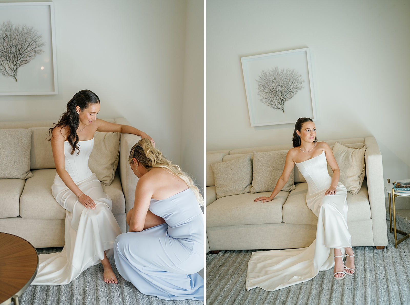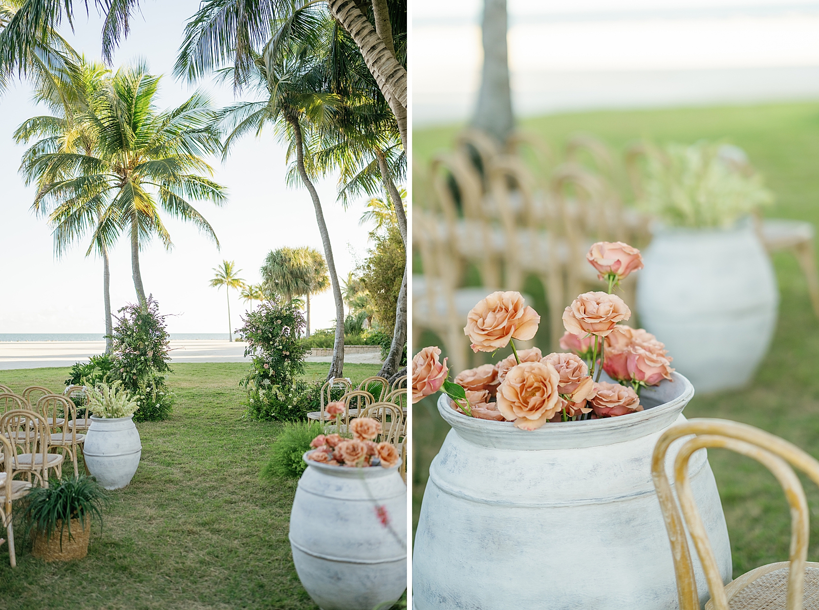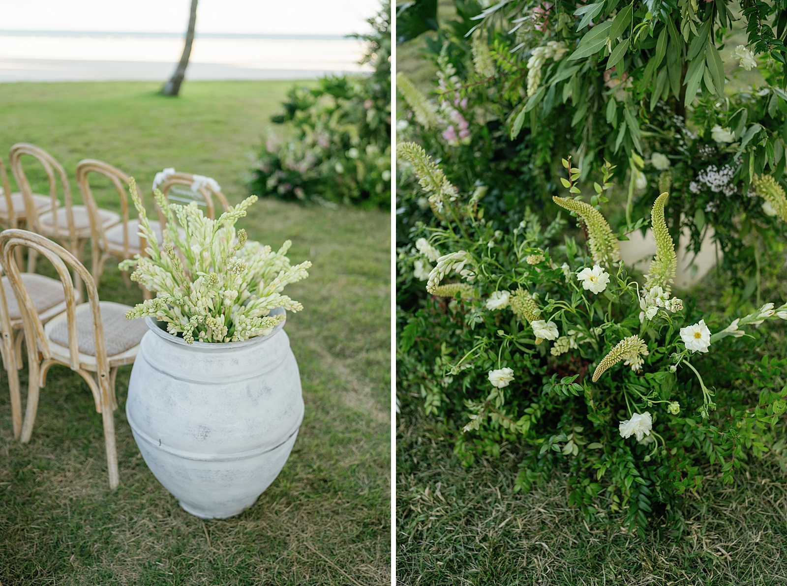 The outdoor ceremony took place overlooking the beach, with the ocean stretching endlessly behind them. Surrounded by sea breezes and natural light, Elle and Vincent exchanged vows in a setting that felt both intimate and expansive. The simplicity of the design allowed the surroundings—and the emotion of the moment—to take center stage.