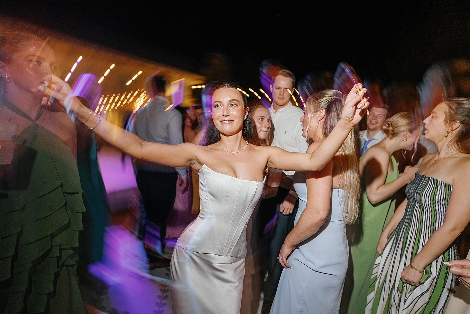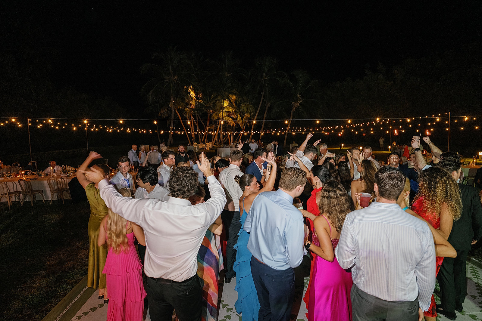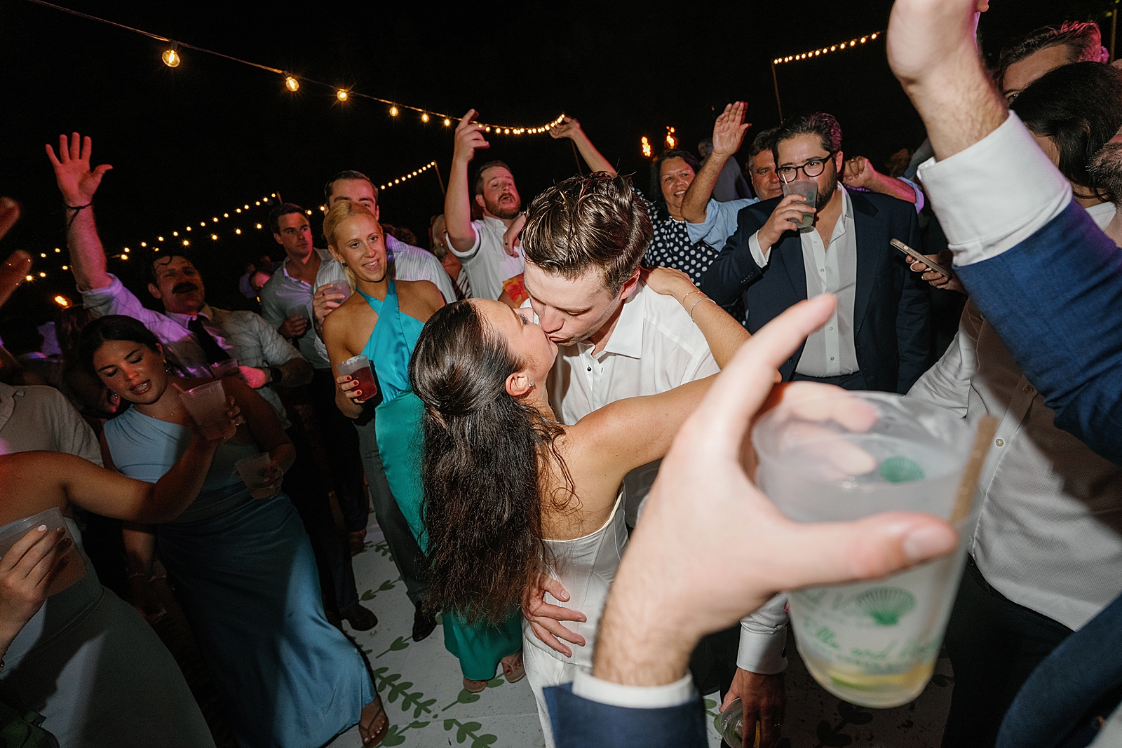As night fell, the energy shifted from romantic to electric. With a DJ and live sax player working together, the dance floor filled quickly—and stayed full. Guests danced beneath the stars, surrounded by flickering candlelight and the soft hum of the ocean nearby. It was the kind of night that feels timeless, where laughter, music, and movement stretch on without anyone checking the time.